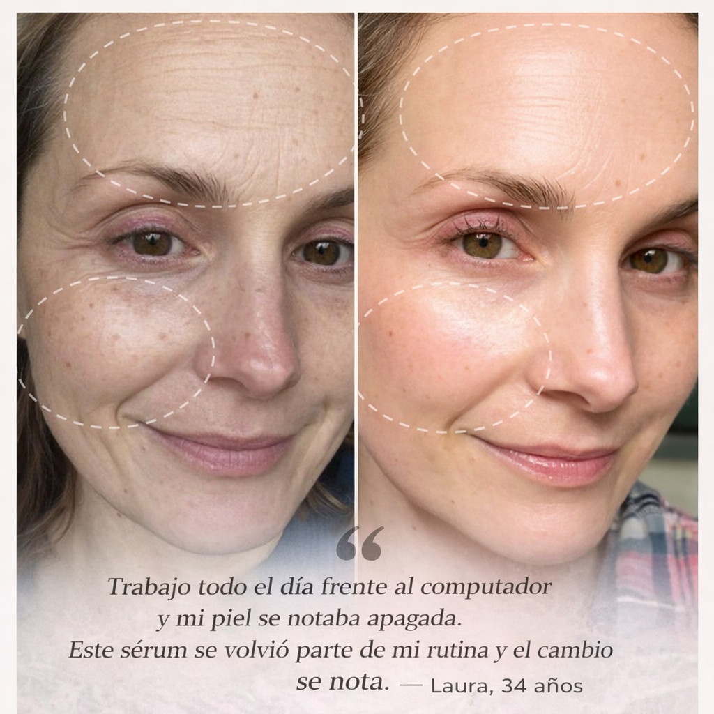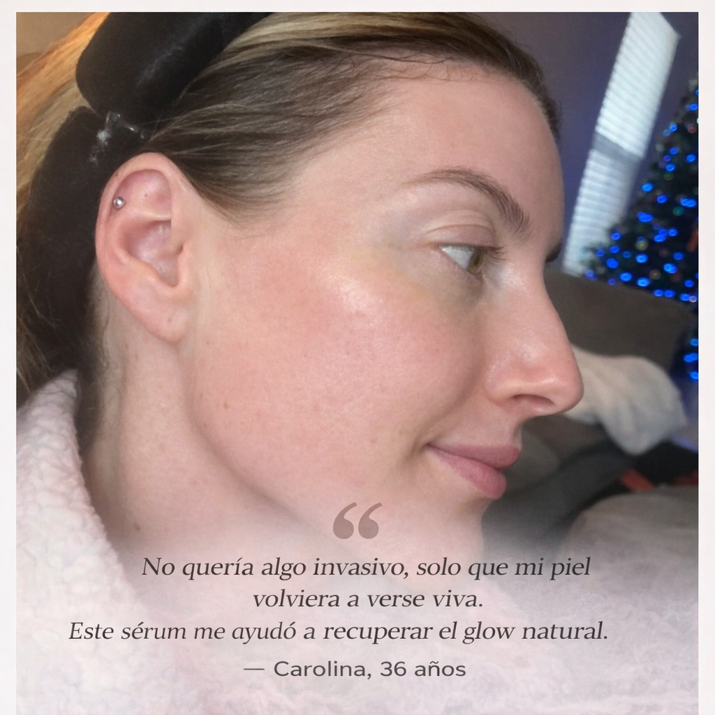 Este sérum apoya la regeneración natural de la piel, ayudando a mejorar su textura y firmeza con el uso constante, sin procedimientos ni rutinas complicadas.